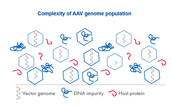 Figure 2. Heterogeneity in AAV genome population: Vector genome, DNA impurities, and host proteins.